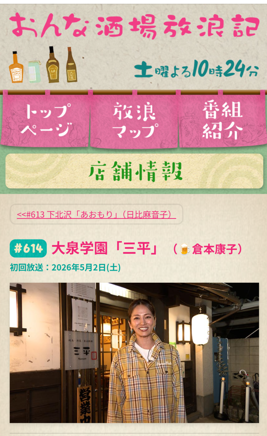BS-TBS「おんな酒場放浪記」5/2(土)午後10:24~