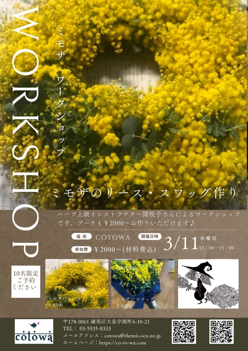 ハーブ上級インストラクター 関悦子さんによるミモザのワークショップを開催いたします♪